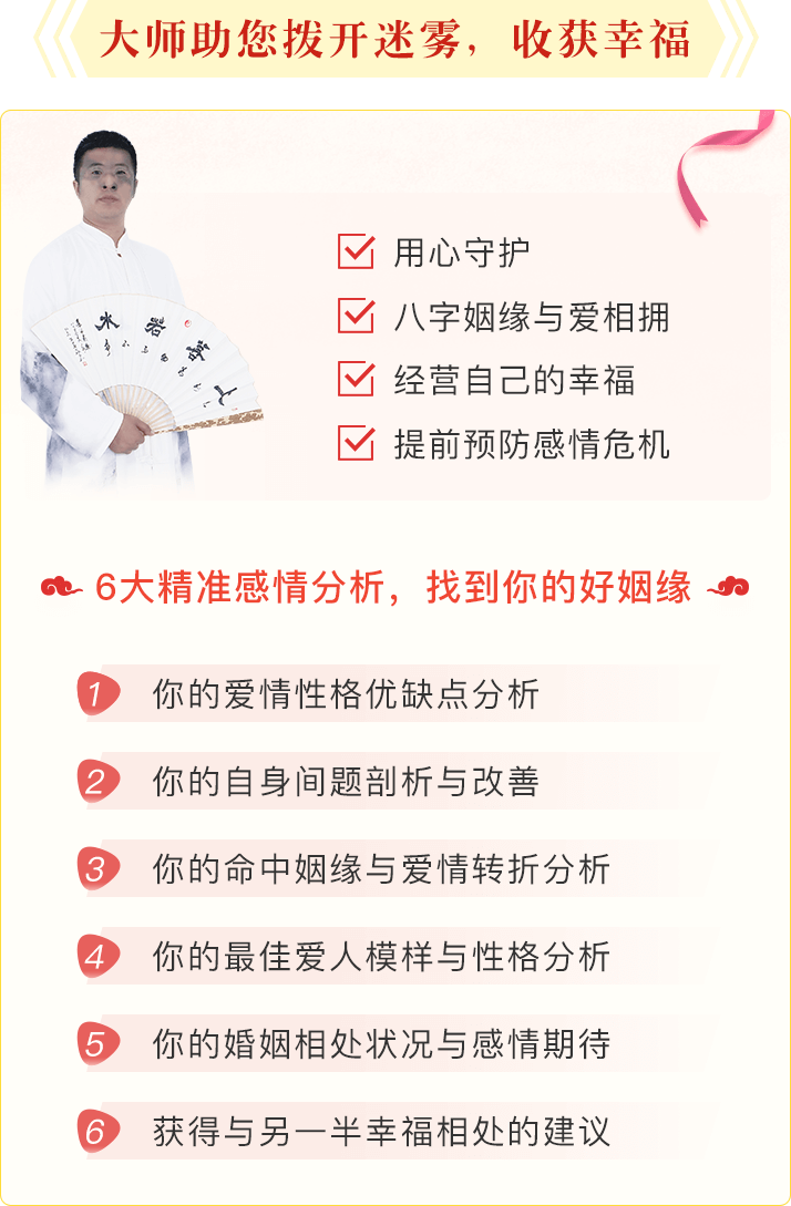 石家庄 钟先生身边的朋友都有对象了,自己心里也默默着急,同大师在线聊了一番后感觉大师测算还是很有准头很有道理的,居然能说出来我什么时候对谁动过心然后不了了之,期望我后面的姻缘测算真的有那么准吧。